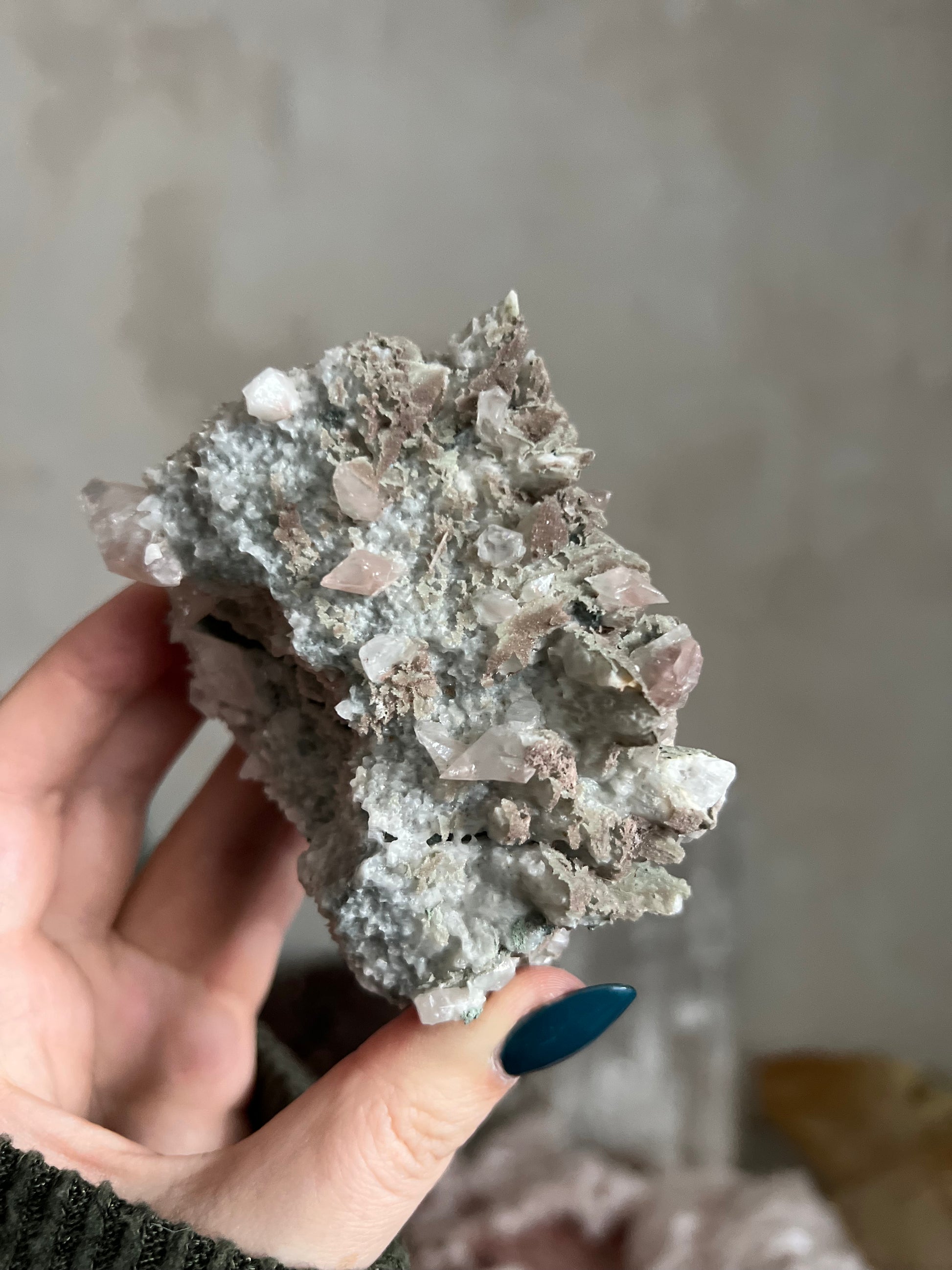 The Calcite is UV reactive and glows a pretty pink color.