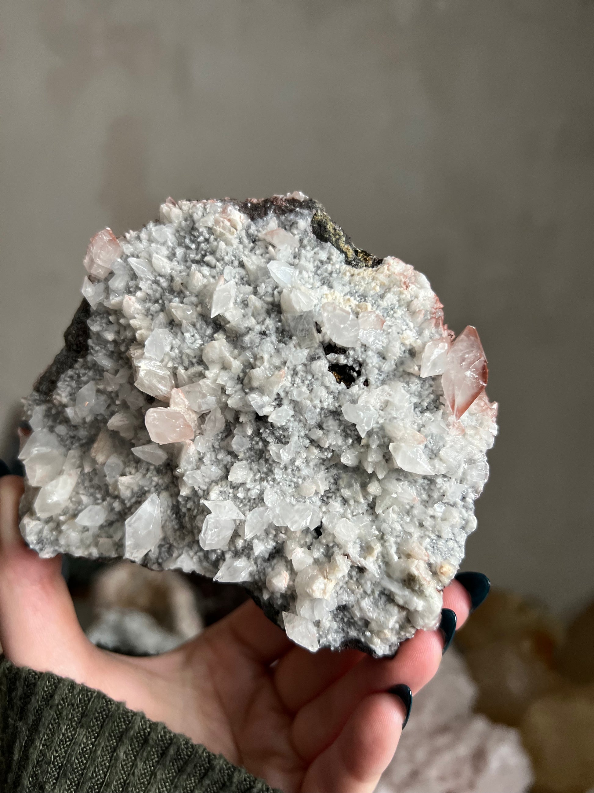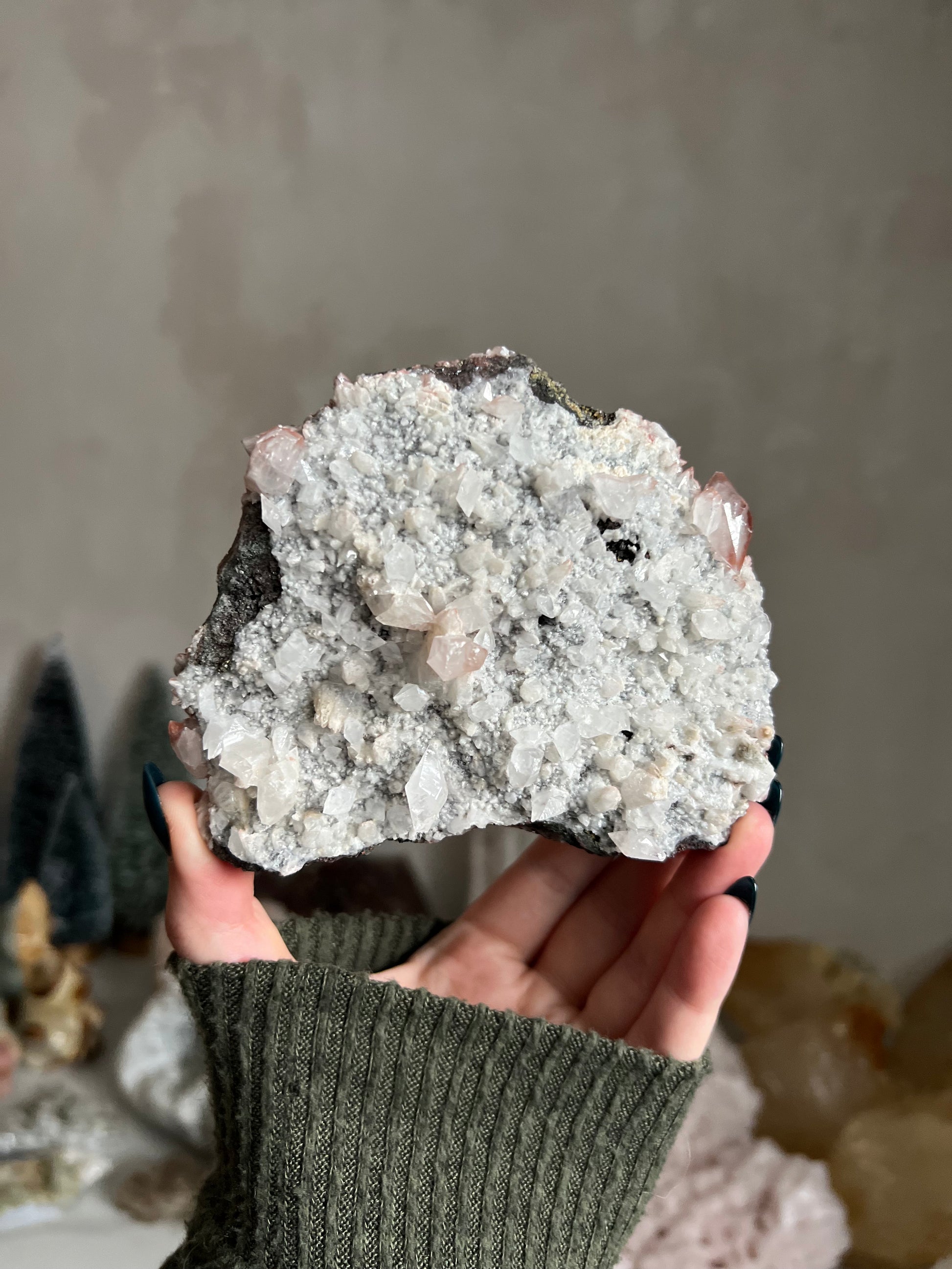 The Calcite is UV reactive and glows a pretty pink color.