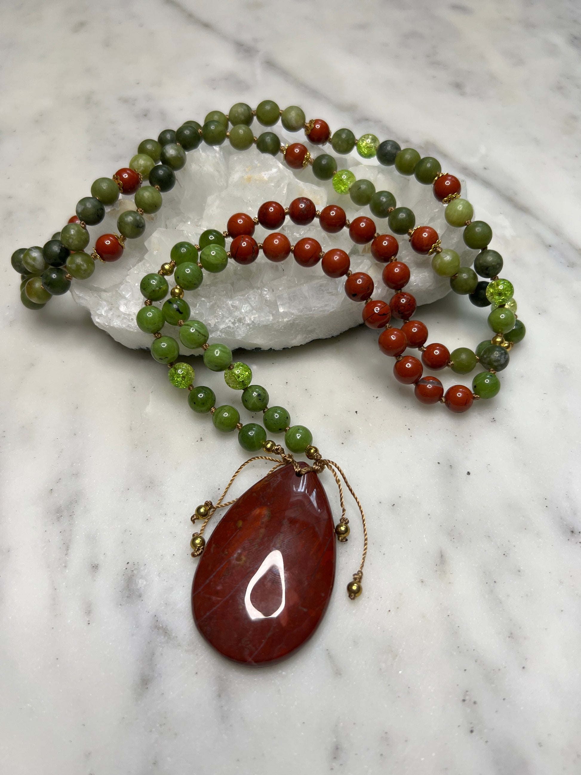 Made from natural Jasper and Jade with crackle glass accent beads.