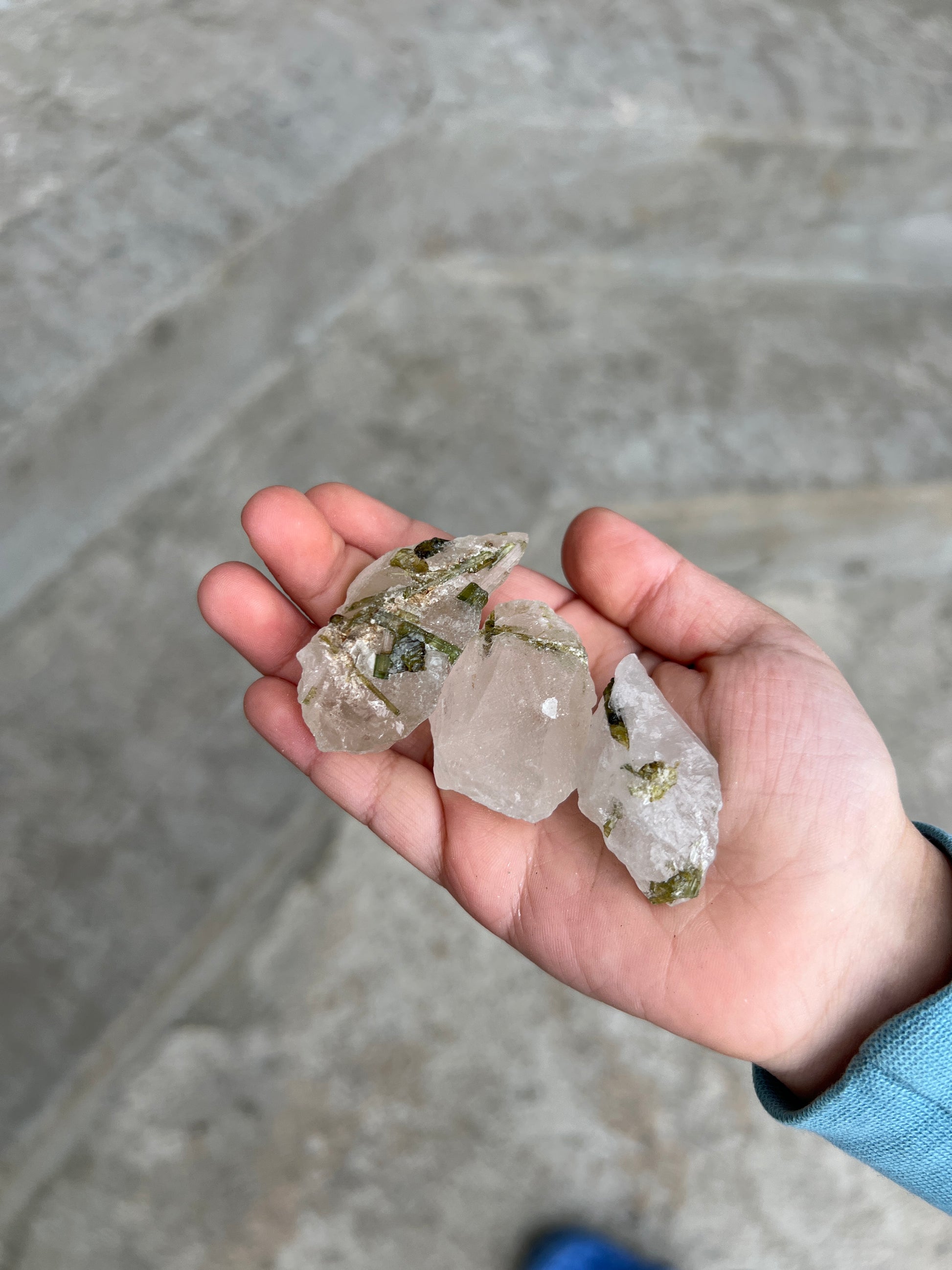 Green Tourmalated Quartz Bundle from Brazil includes 3 pieces.